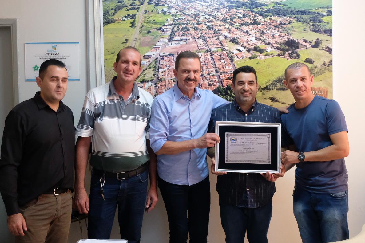 Na prefeitura de Reginópolis, o deputado estadual Itamar Borges recebeu o título de cidadão da cidade neste sábado,