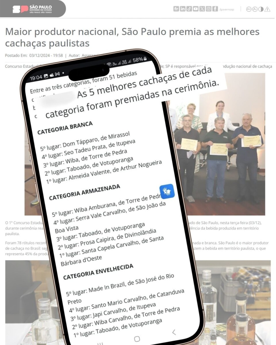 1º CONCURSO ESTADUAL DE QUALIDADE DA CACHAÇA PAULISTA PREMIA AS MELHORES CACHAÇAS DO ESTADO