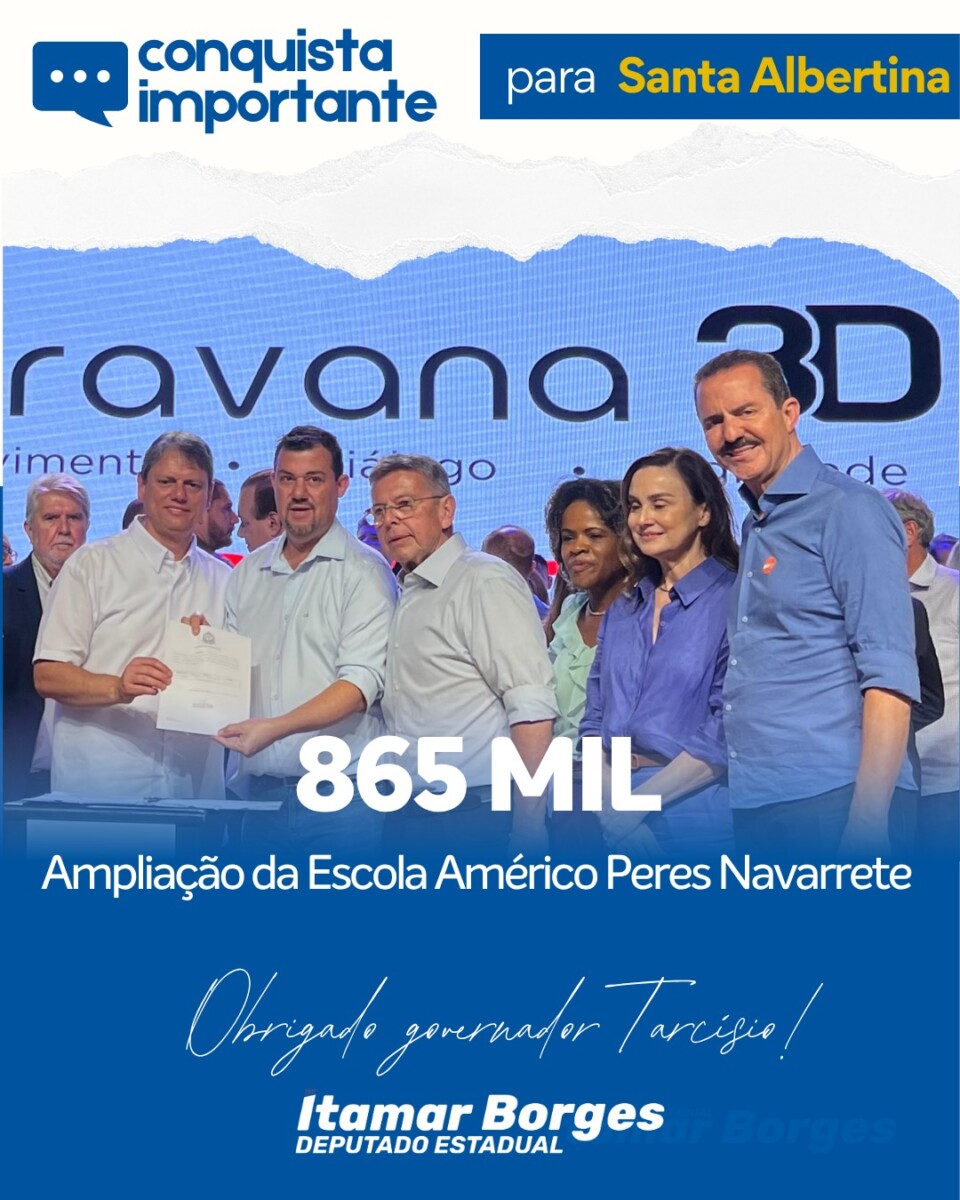 ITAMAR BORGES E TARCÍSIO DE FREITAS DESTINAM R$ 865 MIL PARA AMPLIAÇÃO DE ESCOLA EM SANTA ALBERTINA