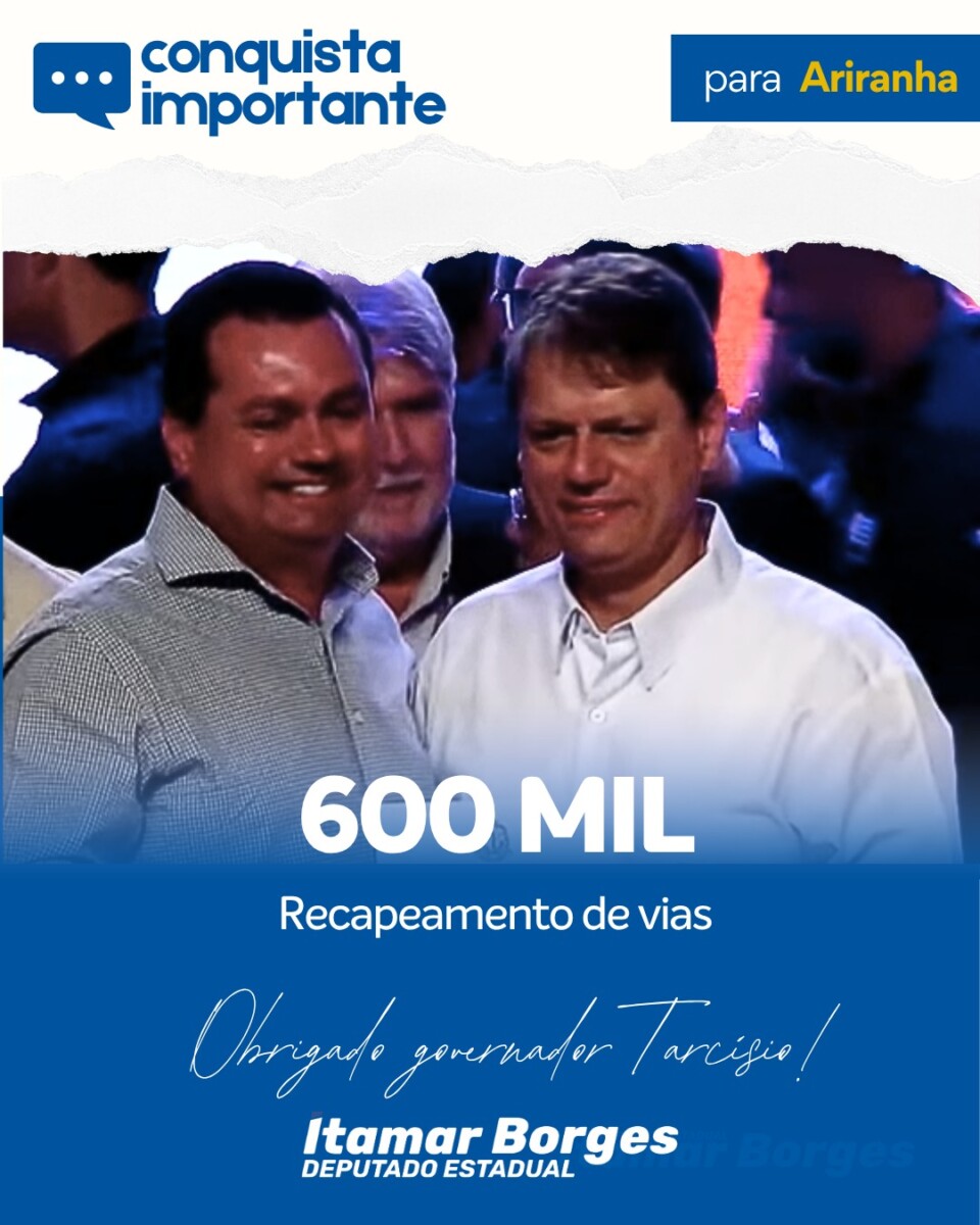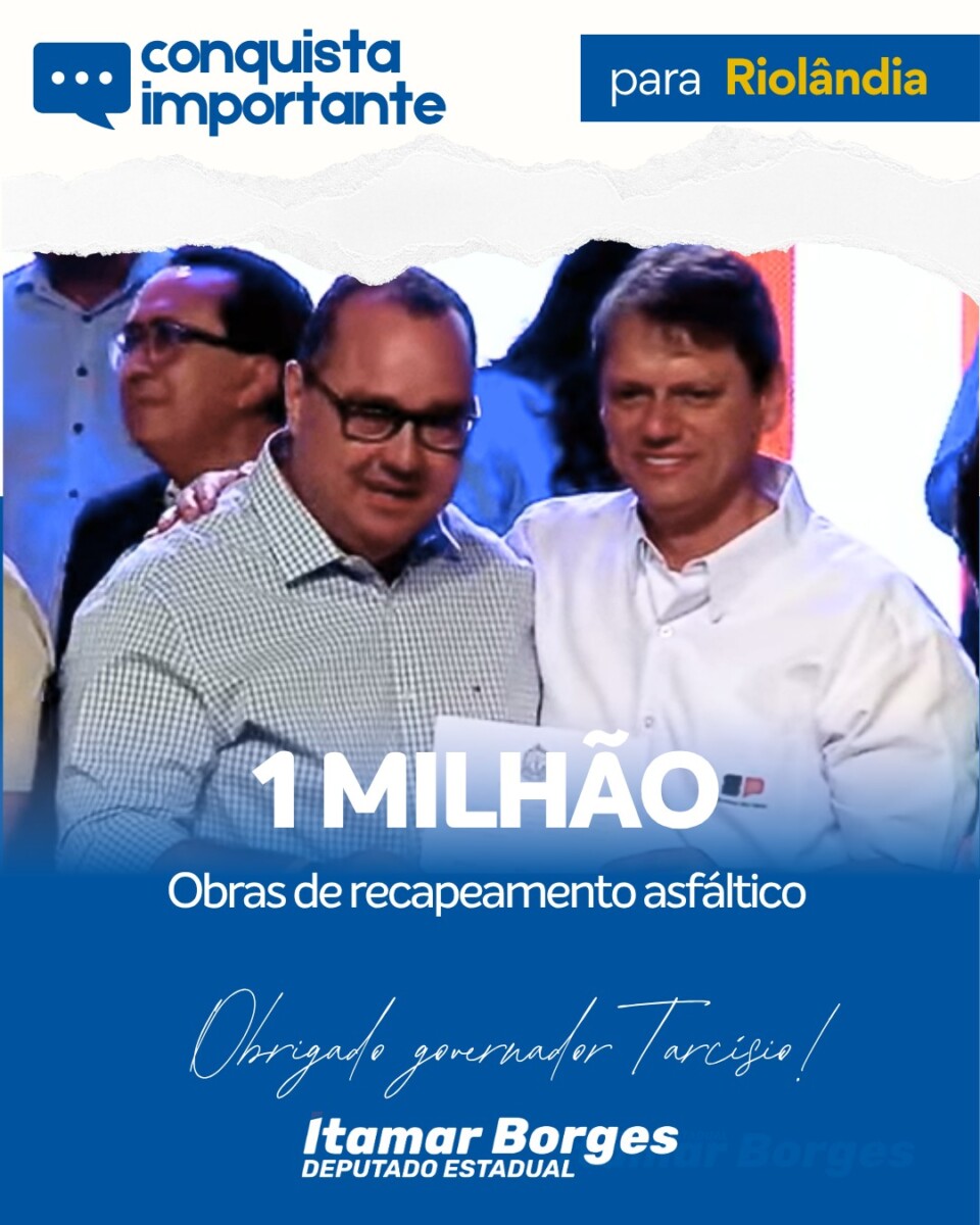 ITAMAR BORGES E TARCÍSIO DE FREITAS DESTINAM R$ 1 MILHÃO PARA INFRAESTRUTURA EM RIOLÂNDIA