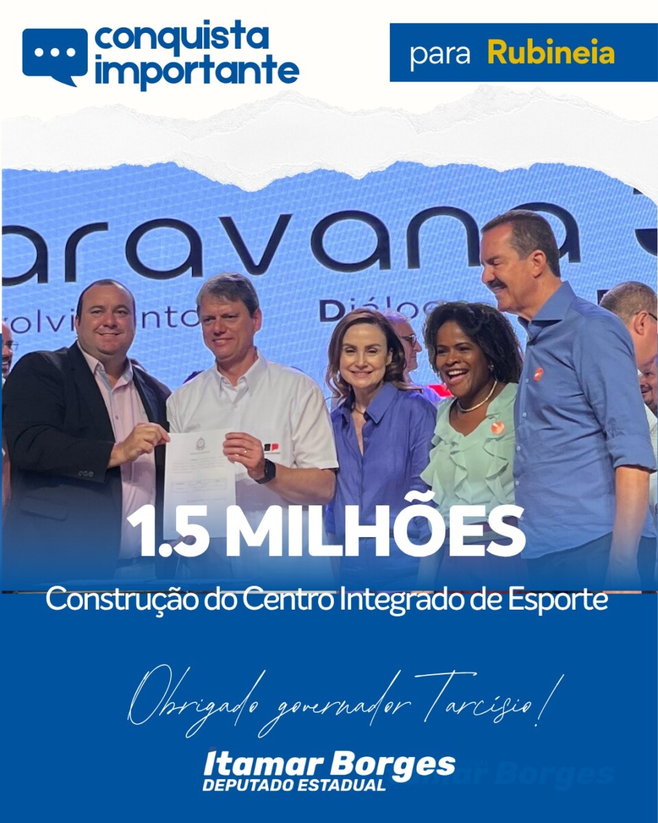 ITAMAR BORGES E TARCÍSIO DE FREITAS DESTINAM R$ 1,5 MILHÃO PARA CONSTRUÇÃO DO CENTRO INTEGRADO DE ESPORTE EM RUBINÉIA