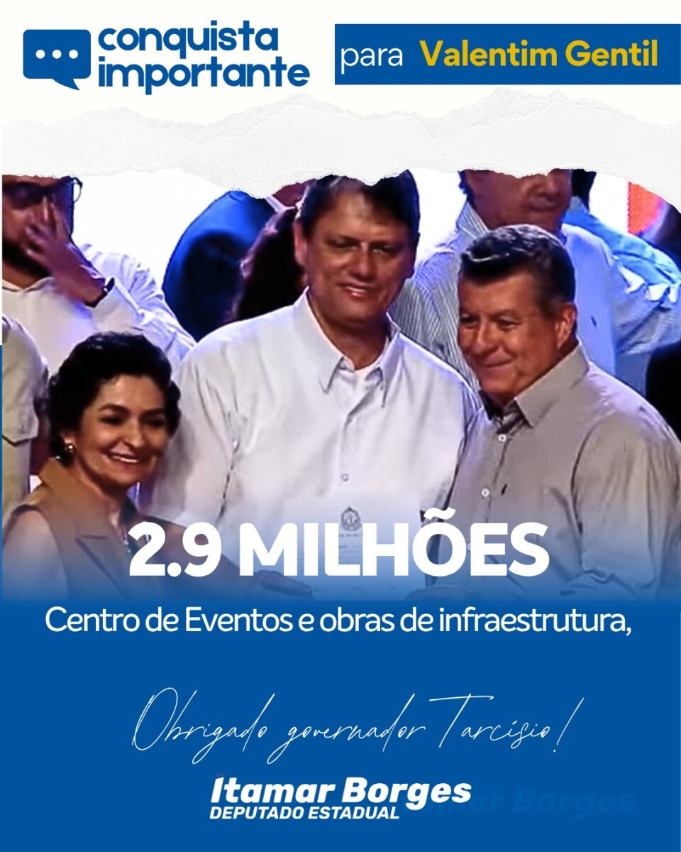 ITAMAR BORGES E TARCÍSIO DE FREITAS DESTINAM R$ 2,9 MILHÕES PARA CENTRO DE EVENTOS E INFRAESTRUTURA EM VALENTIM GENTIL