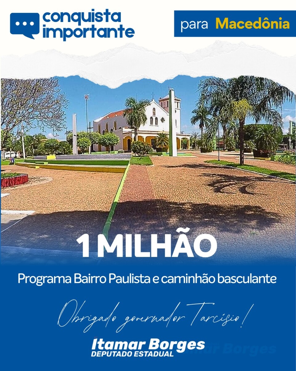 ITAMAR BORGES E GOVERNADOR TARCÍSIO DESTINAM R$1 MILHÃO EM INVESTIMENTOS PARA MACEDÔNIA