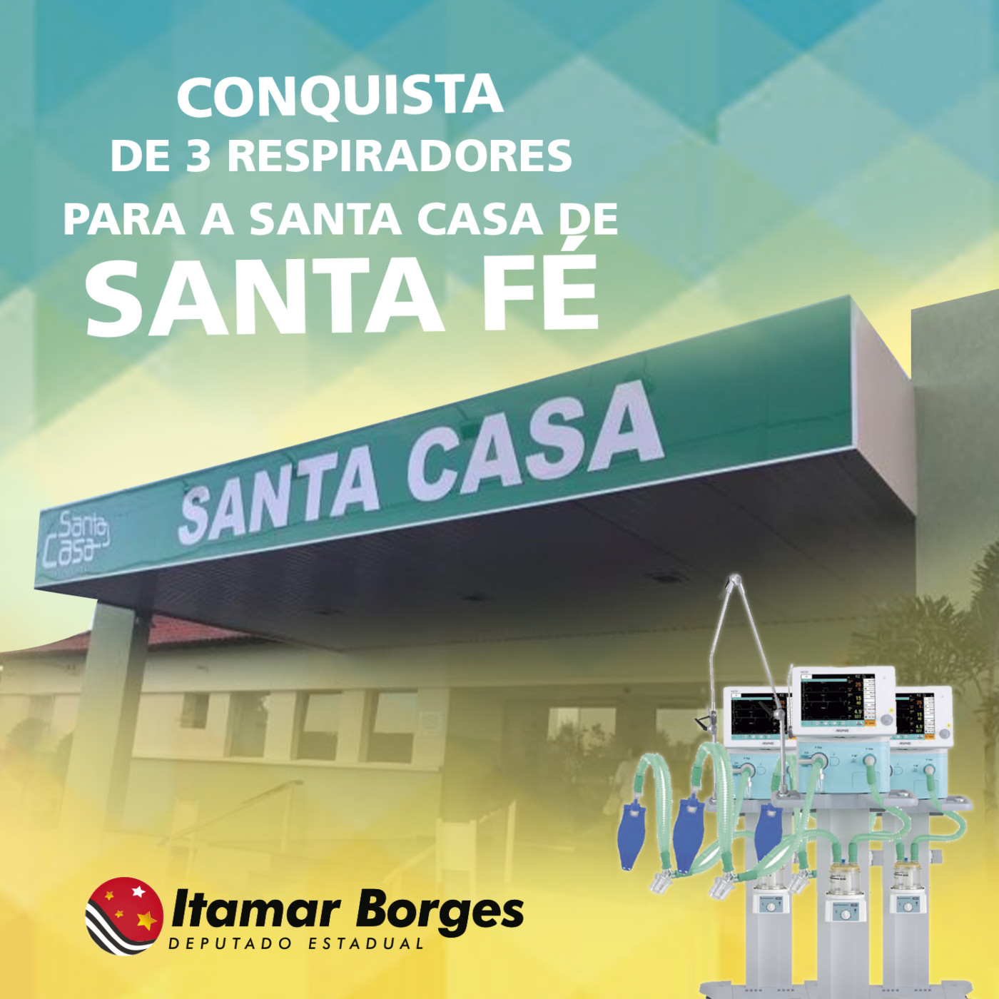 Com apoio do deputado Itamar Borges, Santa Fé recebe mais 3 respiradores para enfrentar o coronavírus