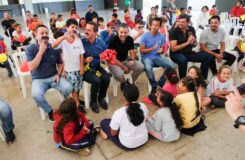 O vereador Júnior, fundador do projeto, e o coordenador-geral Paulinho, receberam o deputado junto com dezenas de crianças que realizaram apresentações de dança desenvolvidas no projeto.
