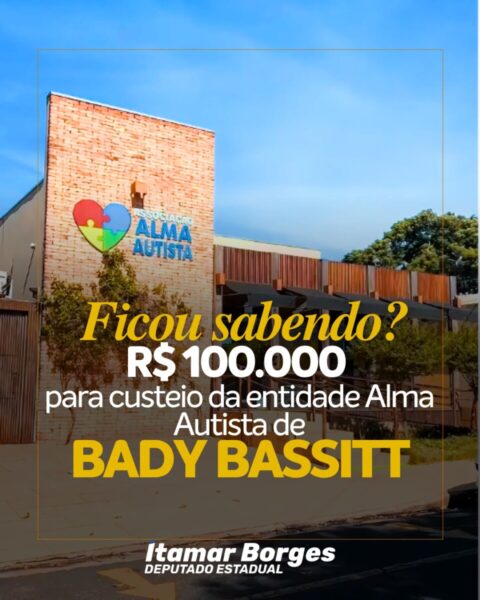 O deputado Itamar Borges destinou R$ 100 mil para o custeio da entidade Alma Autista, de Bady Bassitt, garantindo mais estrutura e melhores condições de atendimento à população local.