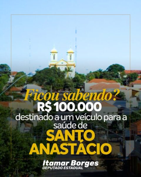 O deputado Itamar Borges destinou R$ 100 mil para a aquisição de um veículo para a saúde de Santo Anastácio, atendendo ao pedido do vereador Franklin da Seguradora.
