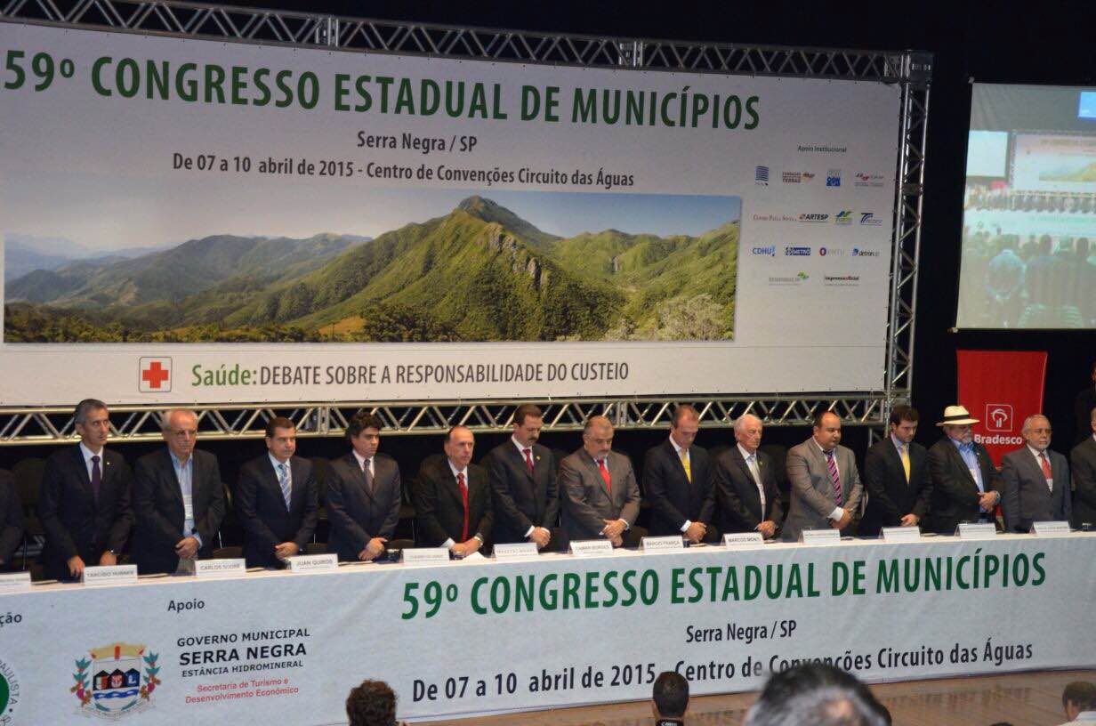 O deputado Itamar Borges (PMDB), participou nesta terça-feira, 07 de abril, da abertura do 59º Congresso Estadual de Municípios, realizado no Centro de Convenções Circuito das Águas, em Serra Negra.