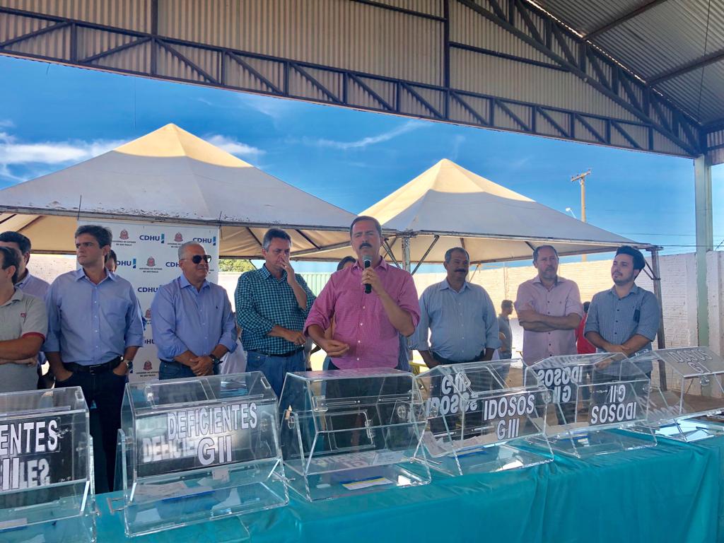 Nesta segunda-feira, 21 de janeiro, o deputado Itamar Borges participou do sorteio de 86 casas da CDHU na cidade de Turiúba. O evento contou com a presença do prefeito Nandão e do presidente da CDHU Eduardo Velucci.