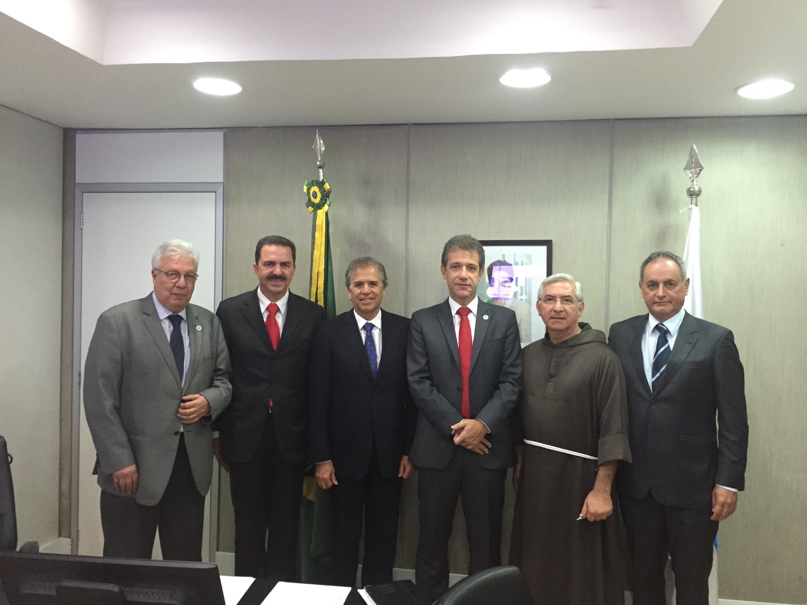 O deputado Itamar Borges (PMDB) e o ministro dos Portos, Edinho Araújo, acompanharam nesta quinta-feira, 03 de setembro, o Frei Francisco, de Jaci, em audiência com o Ministro da Saúde, Arthur Chioro.