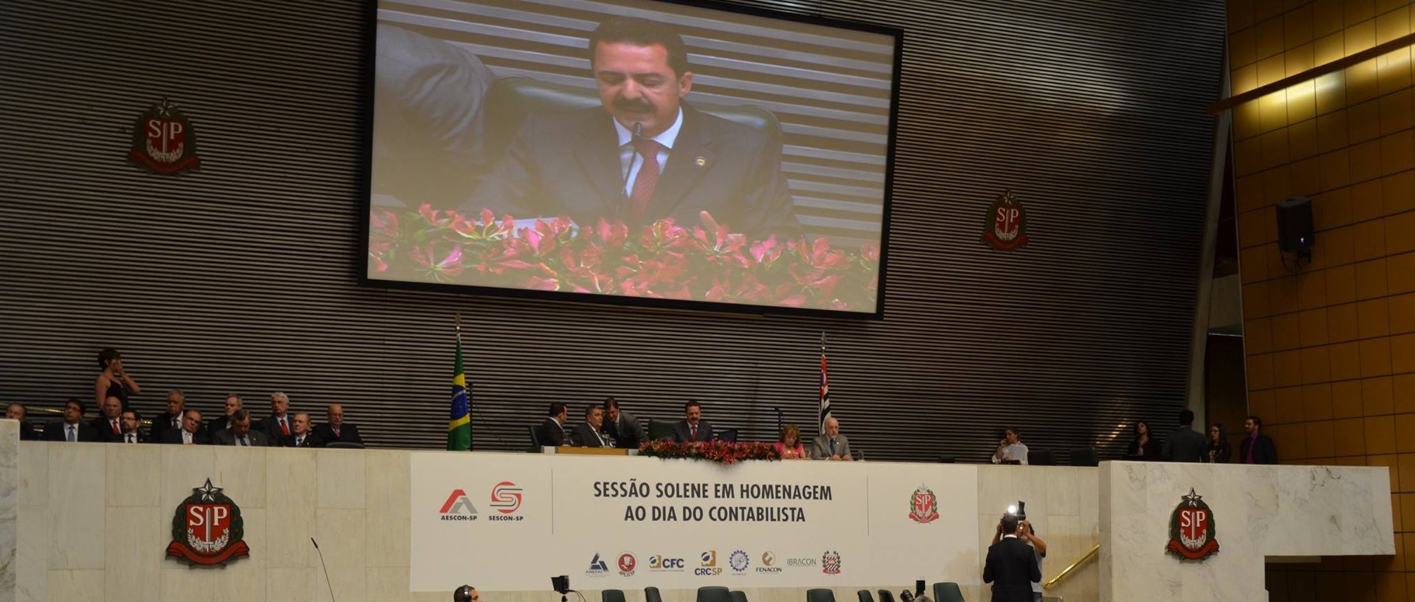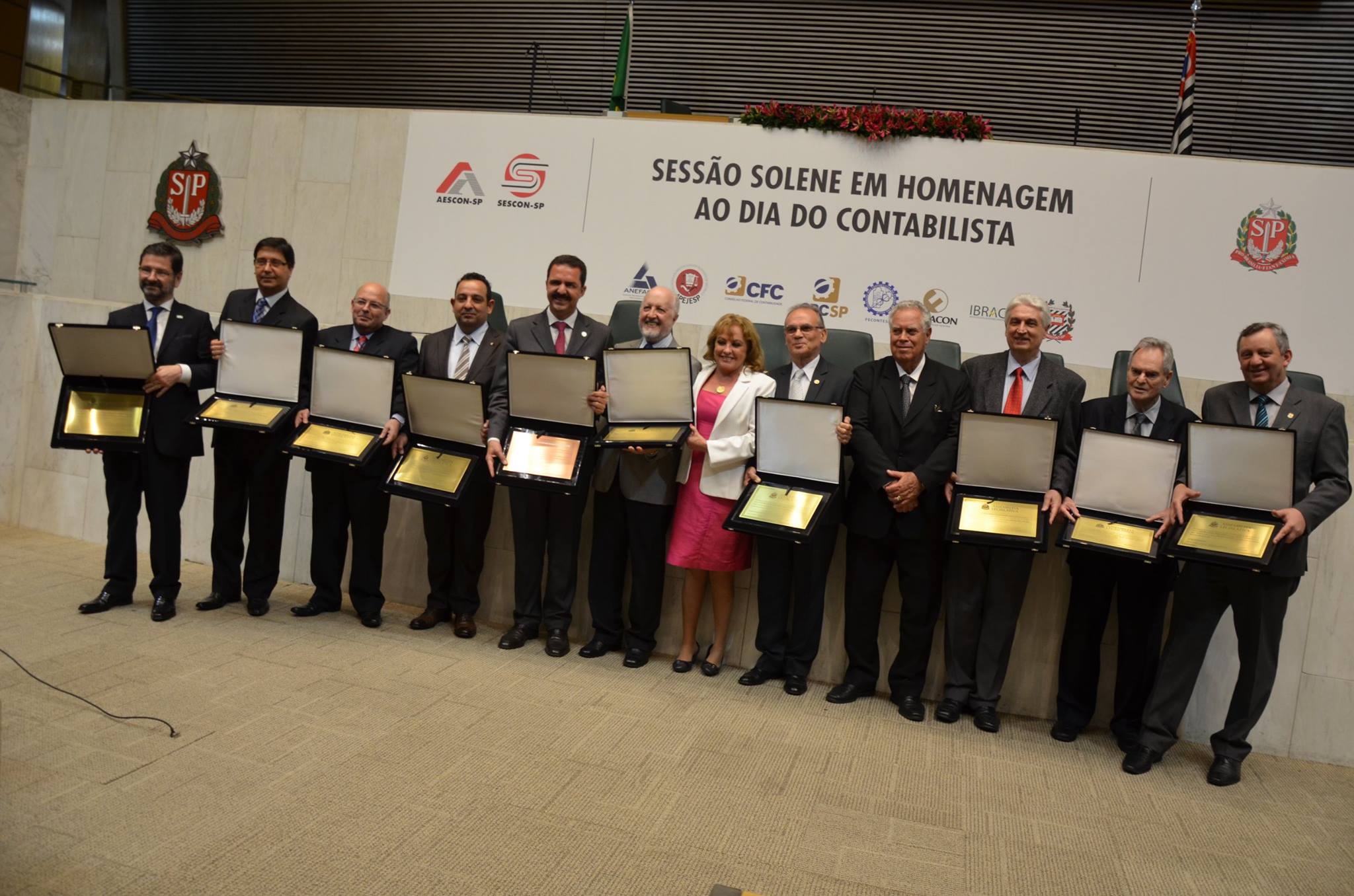 Em nome da Assembleia Legislativa de São Paulo, o deputado Itamar Borges entregou homenagens às entidades congraçadas da contabilidade. Receberam homenagens em nome das instituições: o presidente da Fenacon, Mário Elmir Berti; o presidente do CFC, José Martônio Alves Coelho, representado pelo presidente do CRC-SP, Cláudio Avelino Mac-Knight Filippi, que também foi homenageado em nome da entidade que preside; o presidente do Ibracon Idésio da Silva Coelho Júnior; o presidente da FECONTESP, José de Souza; o presidente do SESCON-SP e AESCON-SP, Sérgio Approbato Machado Júnior; o presidente do Sindcont, Jair Gomes de Araújo; o presidente do IBRACON – 5 Seção, Sérgio Antonio Dias da Silva; o presidente da APEJESP, José Vanderlei Masson dos Santos; o presidente da ANEFAC, Antônio Carlos Machado.