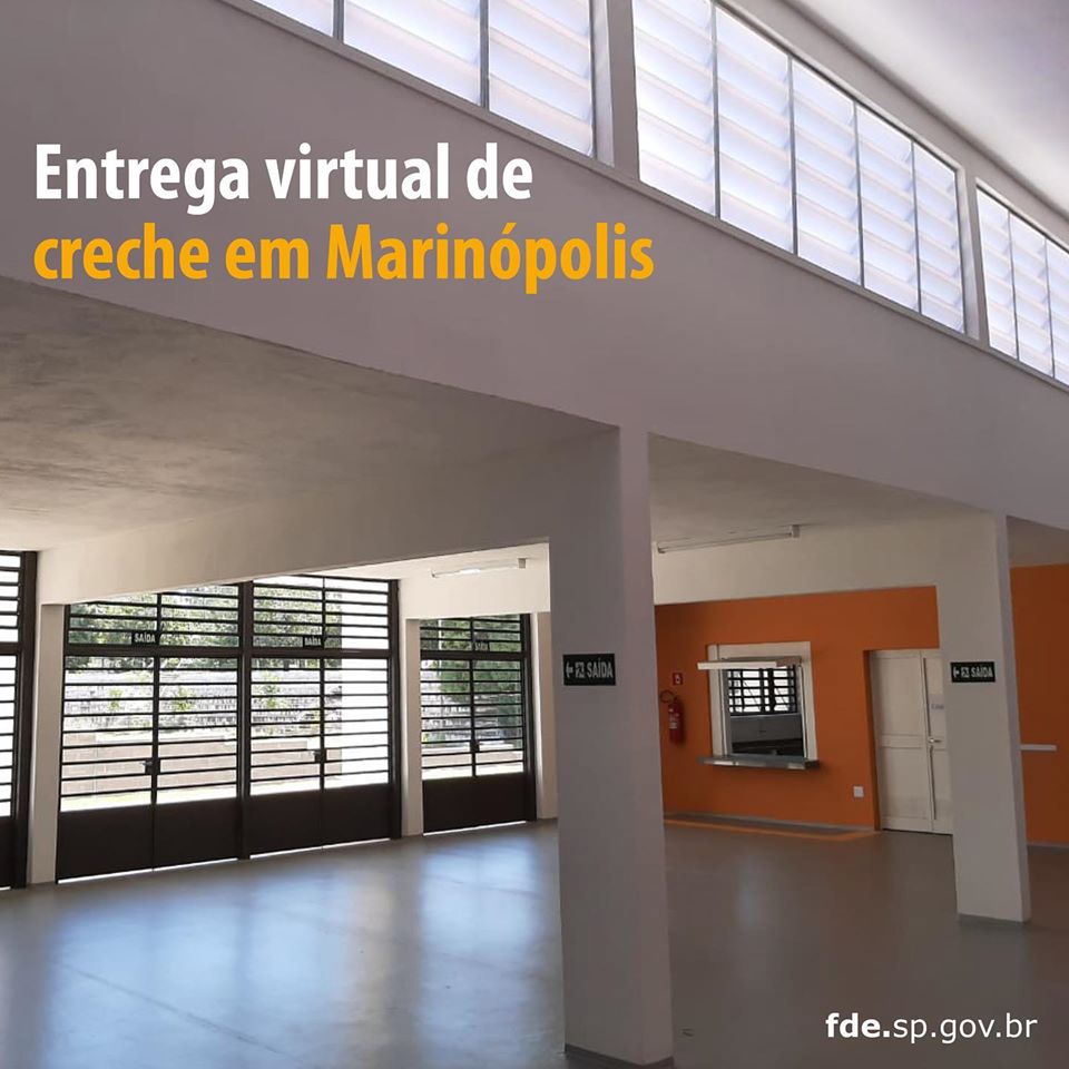 Nesta sexta-feira, 24 de julho, foi inaugurada virtualmente uma Creche Escola no município de Marinópolis. A Unidade de Educação Infantil Pedro José Robles Rubio tem capacidade para atender 130 crianças de 0 a 5 anos.