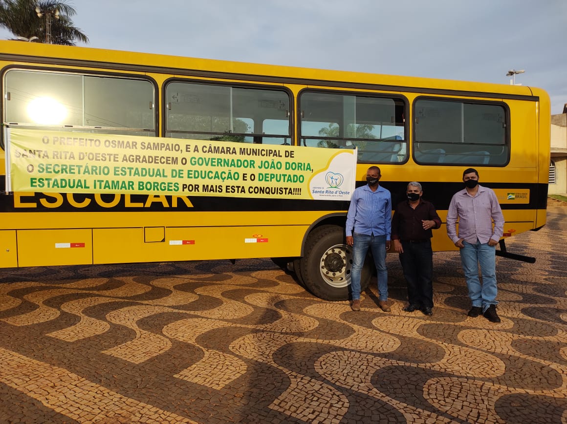O município de Santa Rita D’Oeste recebeu um novo ônibus escolar da Secretaria de Educação do Estado de São Paulo.