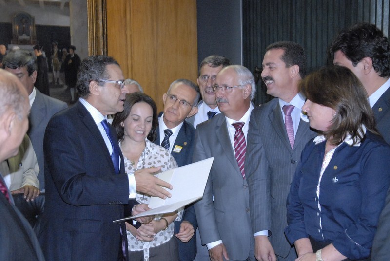 O presidente da Frente Parlamentar das Santas Casas e Hospitais Filantrópicos na Assembleia Legislativa deputado Itamar Borges e o presidente da Fehosp, Edson Rogatti entregaram ao presidente da Câmara Federal, deputado Henrique Eduardo Alves documento aprovado por unanimidade em reunião realizada na Assembleia Legislativa com a parceira da FEHOSP e da Frente Parlamentar da Saúde, sob o tema “Tabela SUS, Reajuste já”, em defesa das Santas Casas e em prol de mais recursos para a saúde.