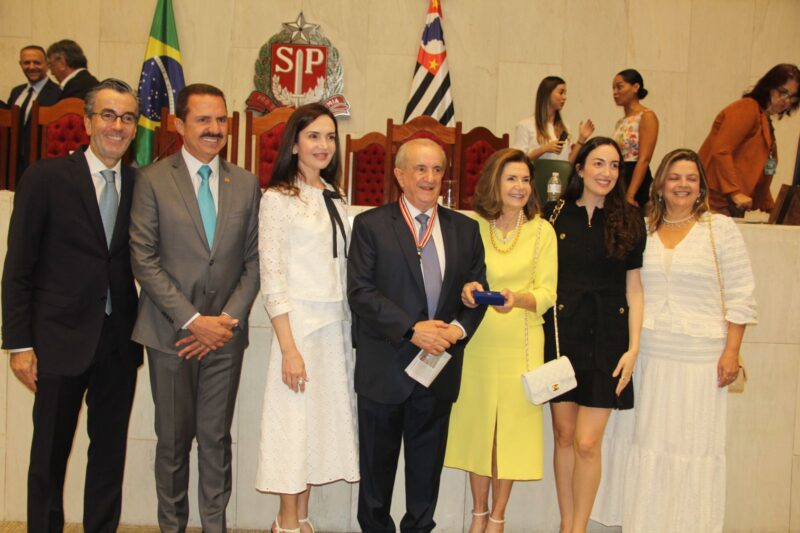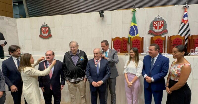 Hoje, o deputado Itamar Borges promoveu uma sessão solene para entregar o Colar de Honra ao Mérito aos ilustres empresários Francisco Matturro e Antônio Galli. A solenidade contou com a presença do presidente da Assembleia Legislativa, deputado André do Prado, da deputada Bebel, coautora desta honraria, entre outros deputados que prestigiaram o evento.