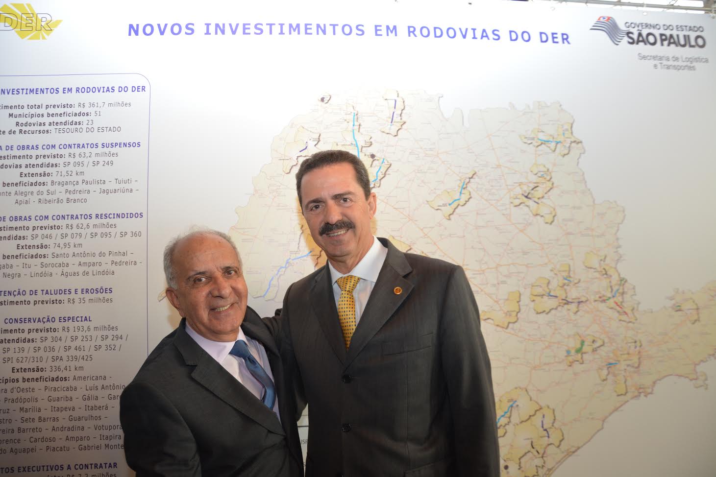 Na oportunidade, o governo lançou um amplo pacote de obras que resultará no investimento de R$ 361,7 milhões em rodovias de São Paulo. A iniciativa abrange 51 municípios e 23 estradas paulistas, com benefícios a 5,3 milhões de habitantes.