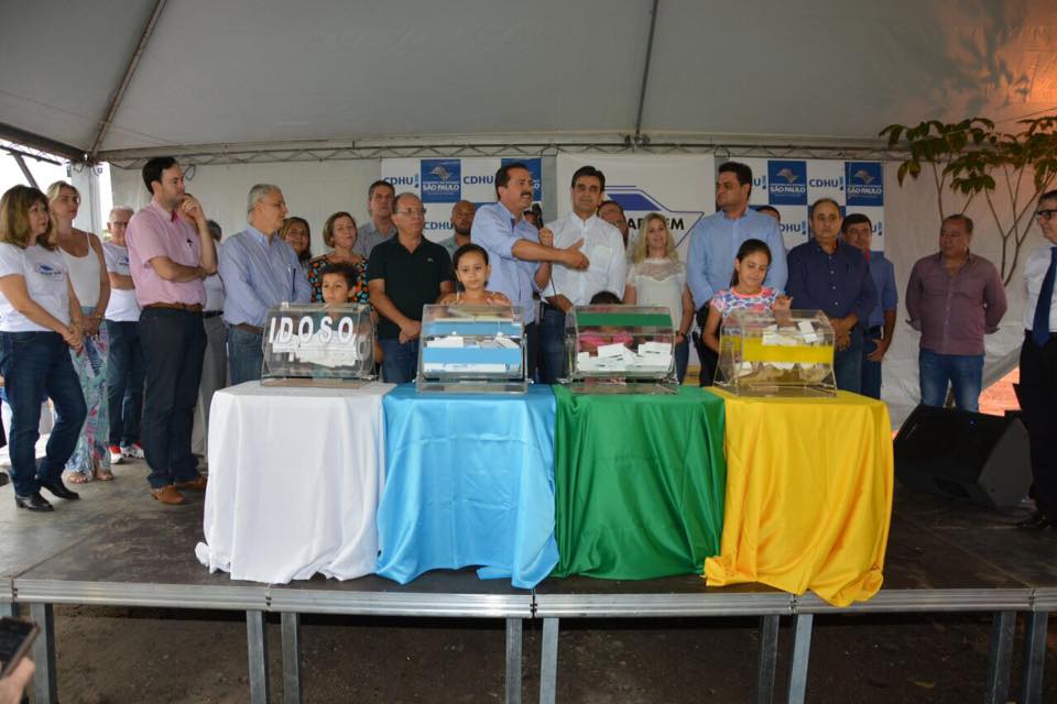 O deputado estadual Itamar Borges (PMDB) acompanhou nesta quinta-feira, 20 de outubro, o secretário de Estado da Habitação, Rodrigo Garcia, em Olímpia para o sorteio de 197 casas da CDHU para o Distrito de Baguaçu.