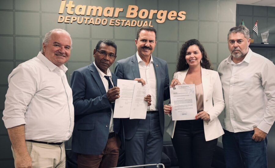 O deputado estadual Itamar Borges recebeu, em seu gabinete, o título de Cidadão Ibitinguense, uma honraria concedida pela Câmara Municipal de Ibitinga. A entrega foi feita pela Alliny Sartori, proponente do título, ao lado do Feitosa, presidente do MDB e do vereador Zé Nilson, com o apoio de todos os vereadores.