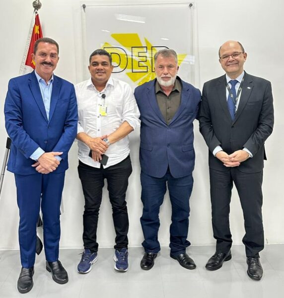 O deputado Itamar Borges esteve ao lado do prefeito Flavinho e do vereador Evandro em uma reunião produtiva com o presidente do DER, Sergio Codelo, levando demandas importantes para o município de Três Fronteiras.