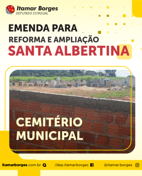 As obras foram realizadas com recursos destinados por meio de emenda parlamentar do deputado Itamar Borges no valor de R$ 150 mil. “Fico muito feliz de poder levar mais essa conquista para Santa Albertina. A reforma do cemitério municipal dará mais conforto e segurança para as pessoas nesse momento tão delicado, quando mais precisam de apoio”, afirmou.