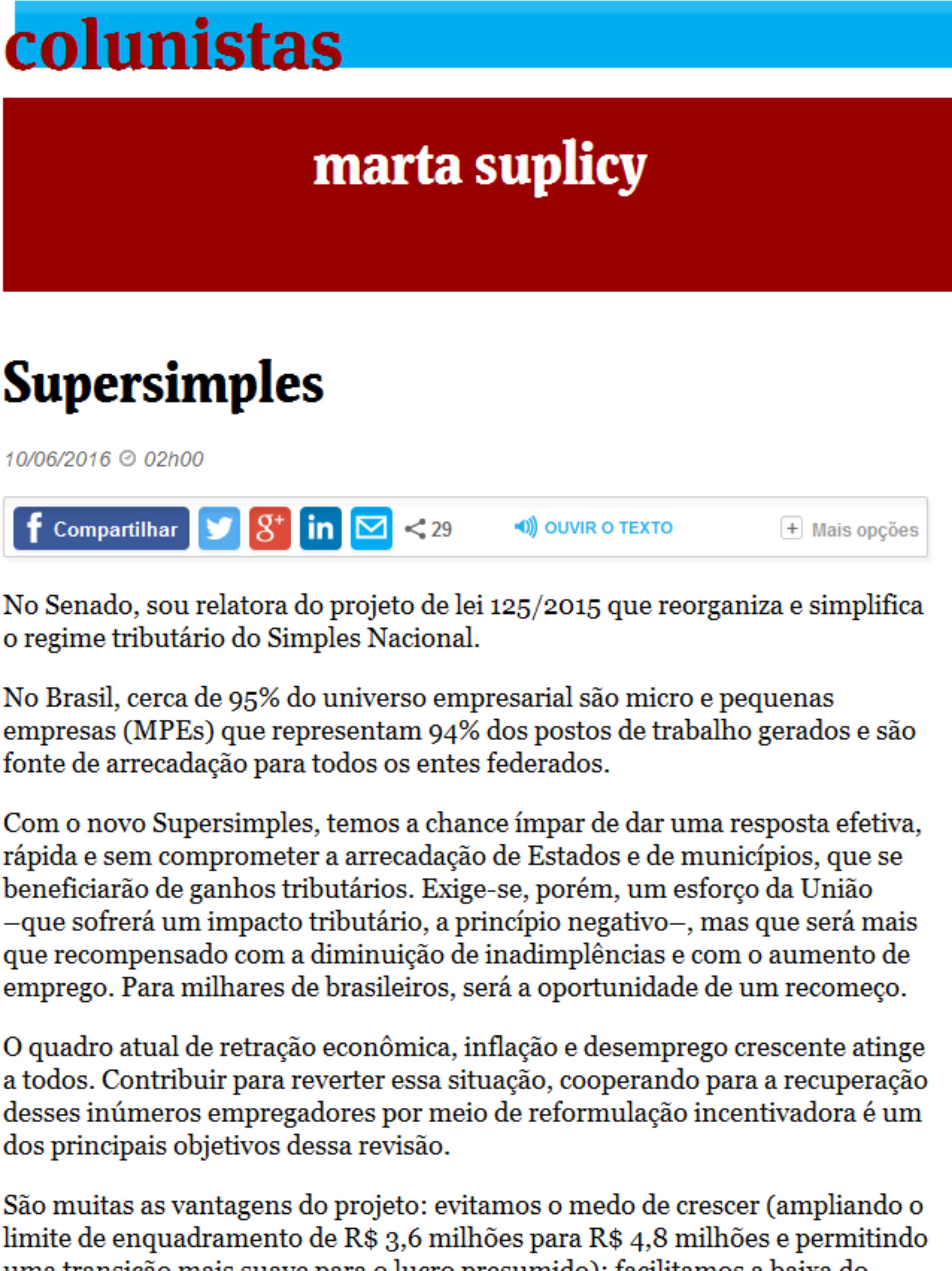 Veja abaixo a coluna da senadora Marta Suplicy, publicada nesta sexta-feira, 10 de maio, na Folha de S.