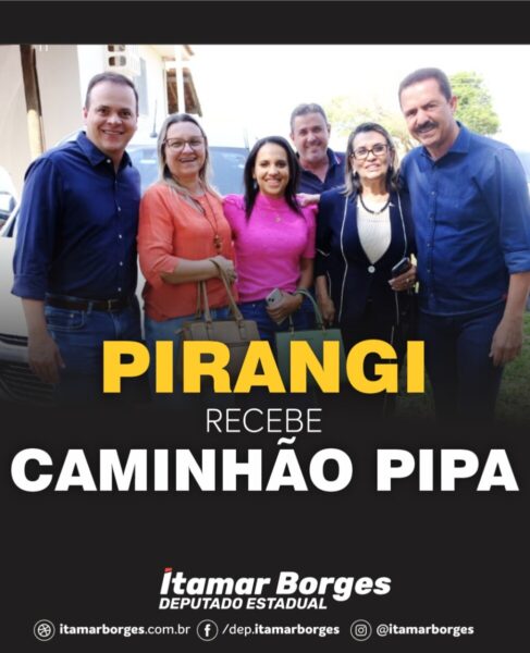 Hoje (09), o deputado Itamar Borges participou de uma importante entrega do Programa Nova Frota da Secretaria de Agricultura e Abastecimento para a cidade de Pirangi, o município recebeu um Caminhão Pipa. O convênio foi formalizado durante a gestão do deputado Itamar Borges, como secretário da Agricultura.
