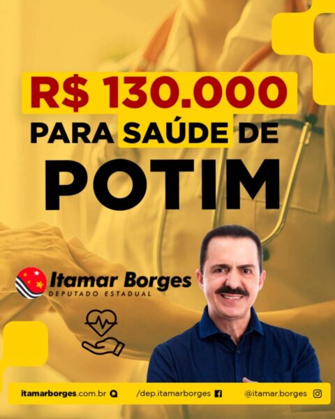 A prefeitura de Potim recebeu R$ 130 mil de emenda parlamentar destinada pelo deputado estadual Itamar Borges, parceiro do município. O recurso foi liberado e será utilizado para custeio na área da saúde.