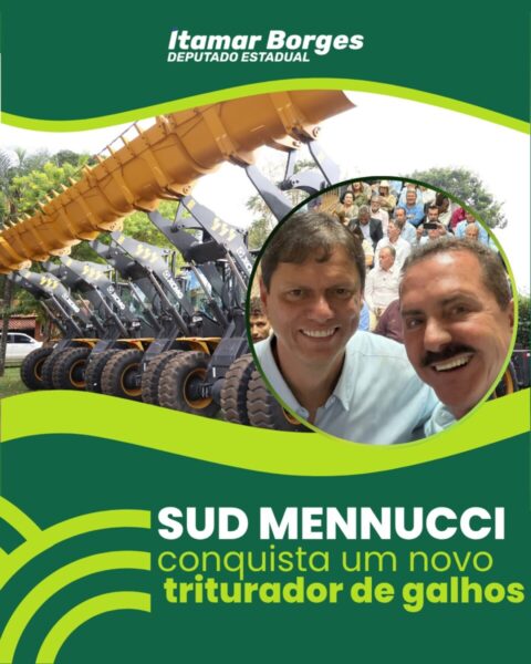 O deputado Itamar Borges participou, ao lado do governador Tarcísio de Freitas, do vice-governador Felício Ramuth e do secretário da Agricultura, Geraldo Melo, da conquista de um triturador de galhos para o município de Sud Mennucci.