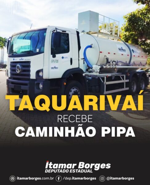 Hoje (09), o deputado Itamar Borges participou de uma importante entrega do Programa Nova Frota da Secretaria de Agricultura e Abastecimento para a cidade de Taquarivaí, o município recebeu um Caminhão Pipa.  O convênio foi formalizado durante a gestão do deputado Itamar Borges, como secretário da Agricultura.