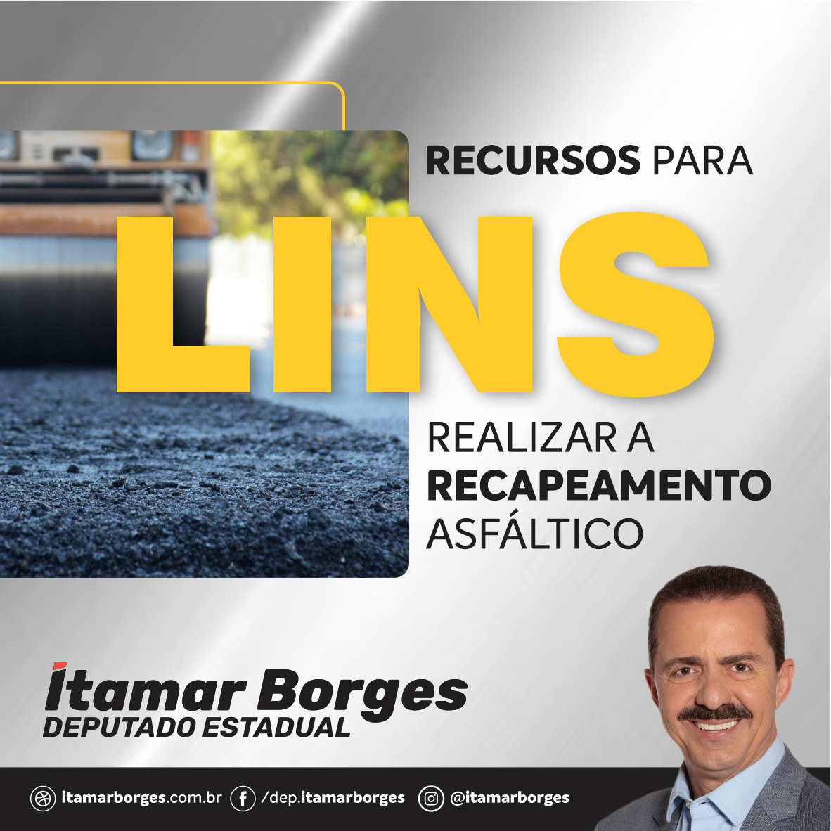 LINS RECEBE EMENDA PARA RECAPEAMENTO ASFÁLTICO DO DEPUTADO ITAMAR BORGES